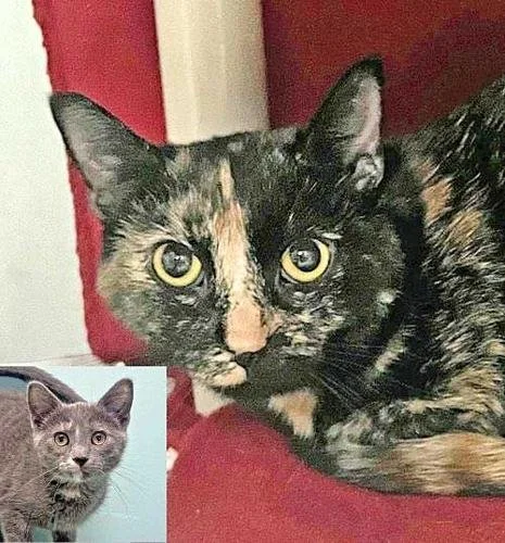 Meet our pets of the week: Eris and her kitten Dalia. Eris is a beautiful 5-year-old spayed female tortie, and Dalia is her equally charming 13-week-old dilute tortie daughter. These two lovely ladies are as sweet and affectionate as they come—but they’ve had a rough start in life. Coming from a chaotic environment, they can be shy and timid at first. But thanks to a caring foster home, they’ve built a strong bond and have come a long way in learning how to trust.